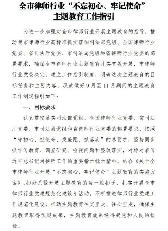 全市律師行業(yè)“不忘初心、牢記使命”主題教育工作指引
