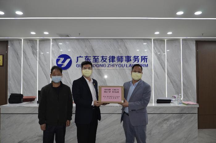(圖為市律師協(xié)會(huì)會(huì)長葉勇、秘書長黃惠忠向我所贈(zèng)送口罩)