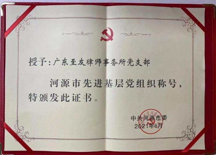 為慶祝中國共產(chǎn)黨成立100周年,激勵全市各級黨組織和廣大黨員不忘初心、牢記使命,真抓實干、改革創(chuàng)新。為全面建設(shè)社會主義現(xiàn)代化強國不懈奮斗。7月1日下午,河源市“兩優(yōu)一先”表彰大會在市會議中心隆重舉行,廣東至友律師事務(wù)所黨支部榮獲“河源市先進基層黨組織”稱號,在會上受到表彰。