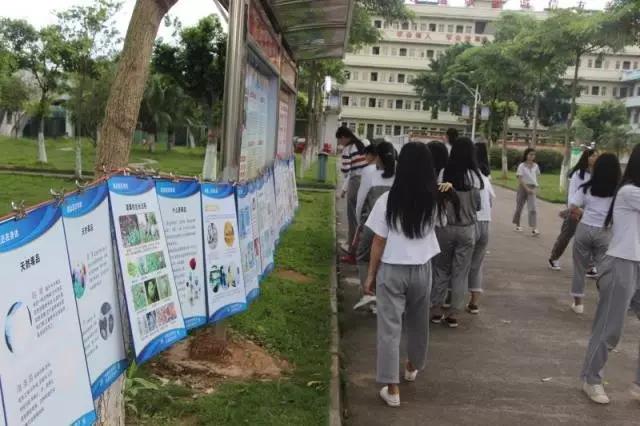模擬法庭后,同學們在法制宣傳廊了解知識。