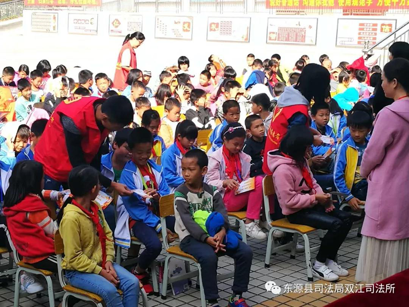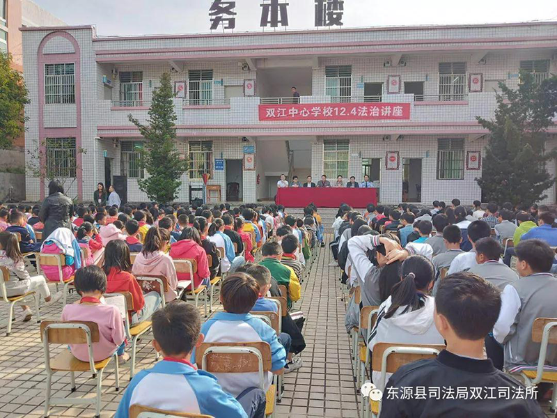 今年的12月4日是全國第五個國家憲法日,為了加強青少年的法治教育,引導(dǎo)、保障和促進青少年的健康成長,減少和預(yù)防青少年犯罪,做到防微杜漸,警鐘長鳴。2018年12月4日,雙江司法所聯(lián)合鎮(zhèn)綜治辦、派出所及廣東至友律師事務(wù)所的駐村律師舉辦了以“尊崇憲法、學(xué)習(xí)憲法、遵守憲法、維護憲法、運用憲法”為主題的雙江中心學(xué)校法治講座暨12.4憲法日宣傳活動進校園活動。師生反應(yīng)熱烈,此次講座師生300余人參加。鎮(zhèn)委副書記黃錦城參加了活動。