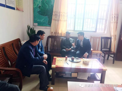 2019年1月30日,雙江鎮(zhèn)駐村律師廣東至友律師事務(wù)所藍(lán)曉帆與雙江司法所工作人員一起參與了橋頭村村民與租用該村土地的某公司的合同糾紛調(diào)解,并為村民進(jìn)行了法律咨詢活動(dòng)。